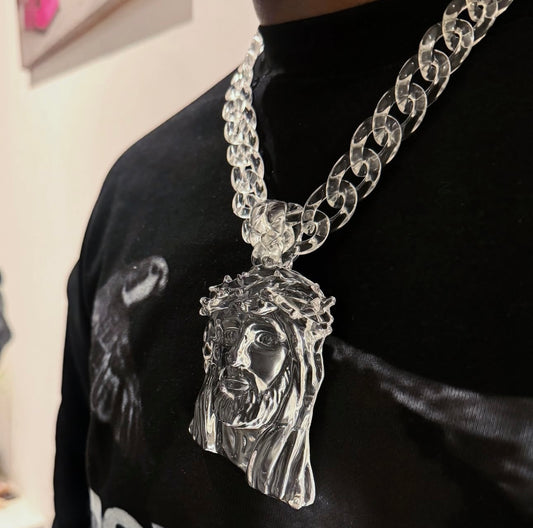 Clear Jesus Piece Pendant