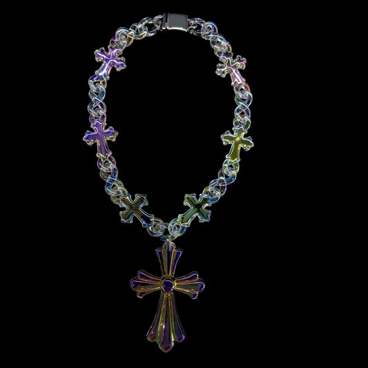 Iridescent Cross Pendant & Chain Set