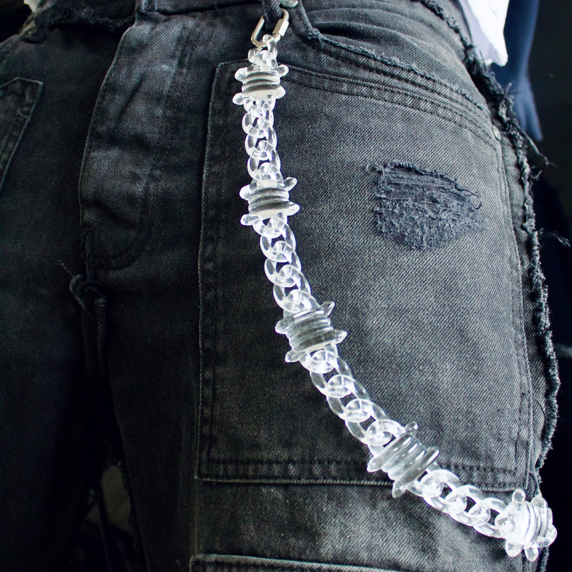 Make a statement with our CLear Pocket Chains, crafted from high-quality resin for a bold, transparent finish. Lightweight yet durable, they clip easily to your belt loop, bag, or pants. Perfect for adding a clean edge to any fit.