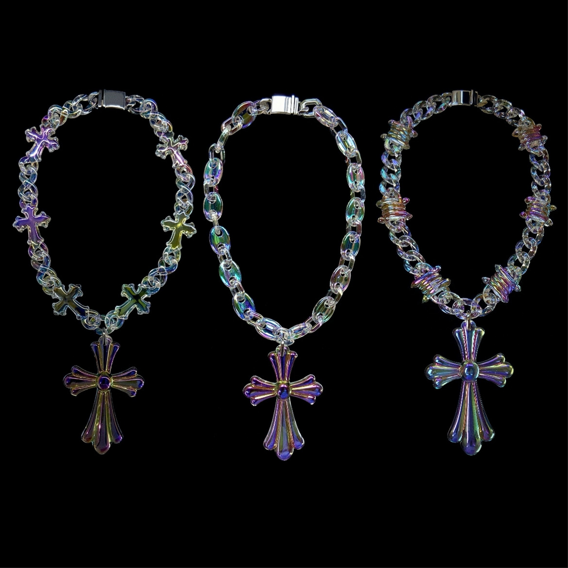 Each set includes the Iridescent Cross Pendant.
